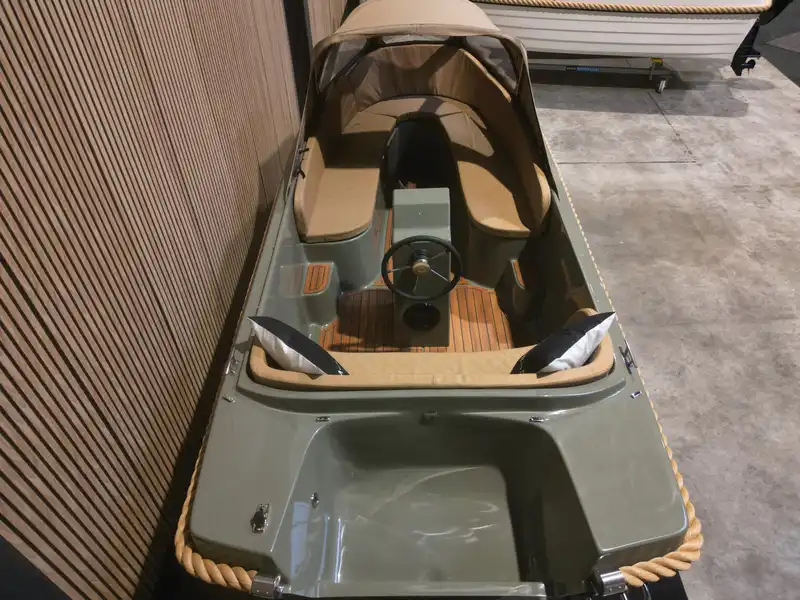 inclusief Tohatsu 9,9pk injectie buitenboordmotor elektrisch gestart, buiskap met kuipzeil, luxe kussens met ruit (camel), zonnedek, HPL teakline vloer, toplicht, navigatieverlichting, inbouw hendel, zwart stuurwiel, RVS zwemtrap, ankerluik, bekerhouders op stuurconsole, schakelpaneel met 12V/USB, 12 liter benzinetank en accu.