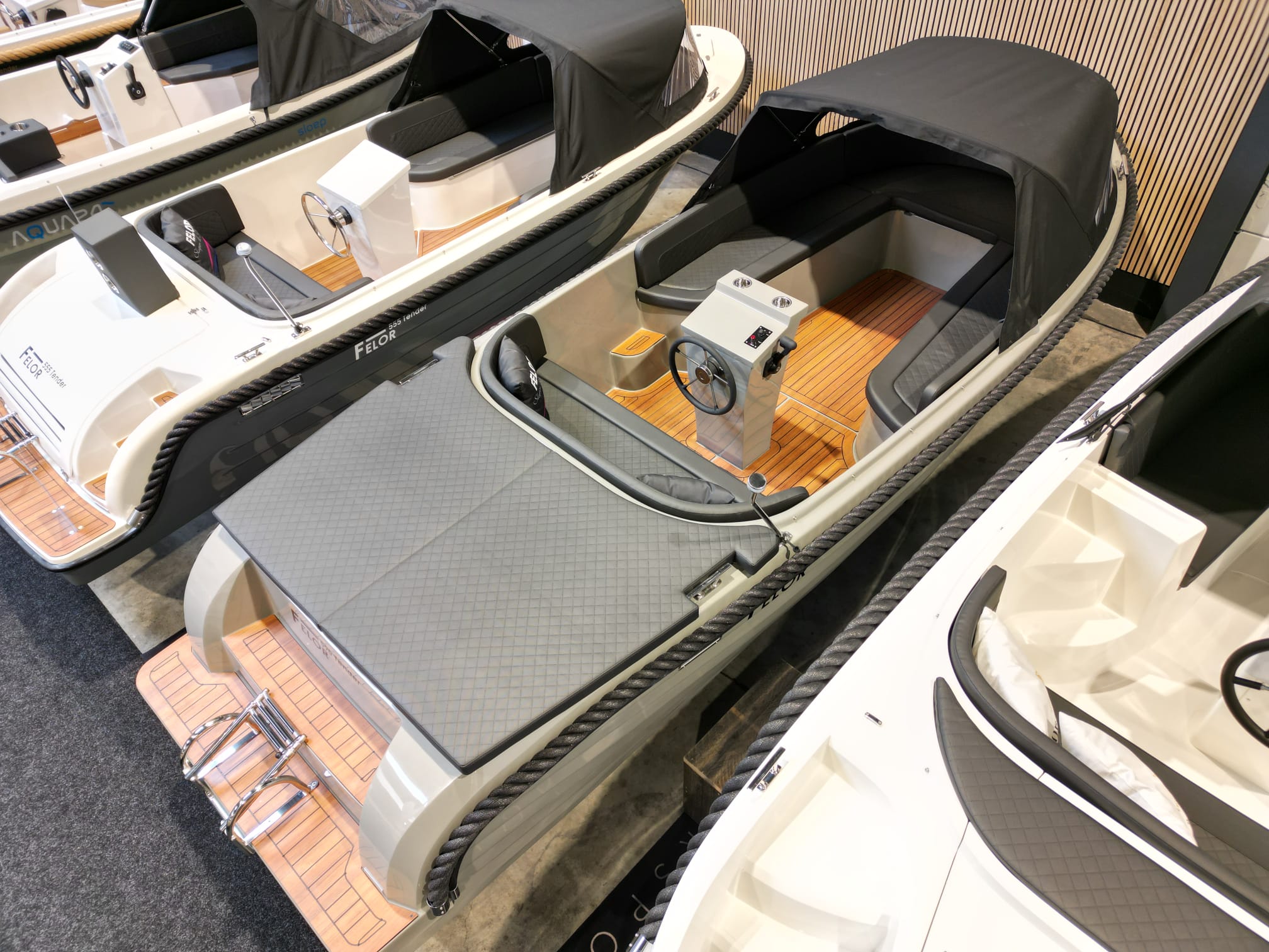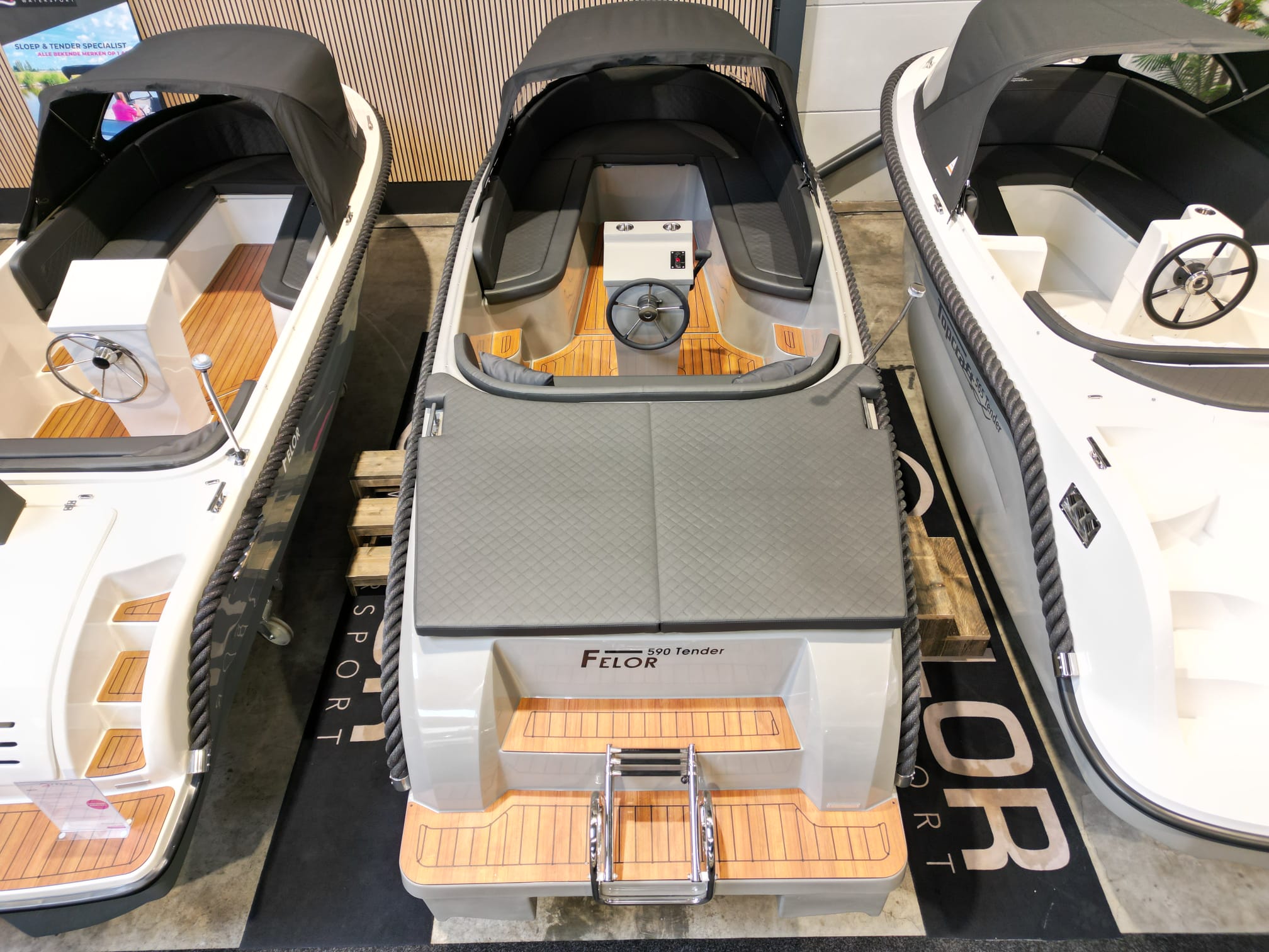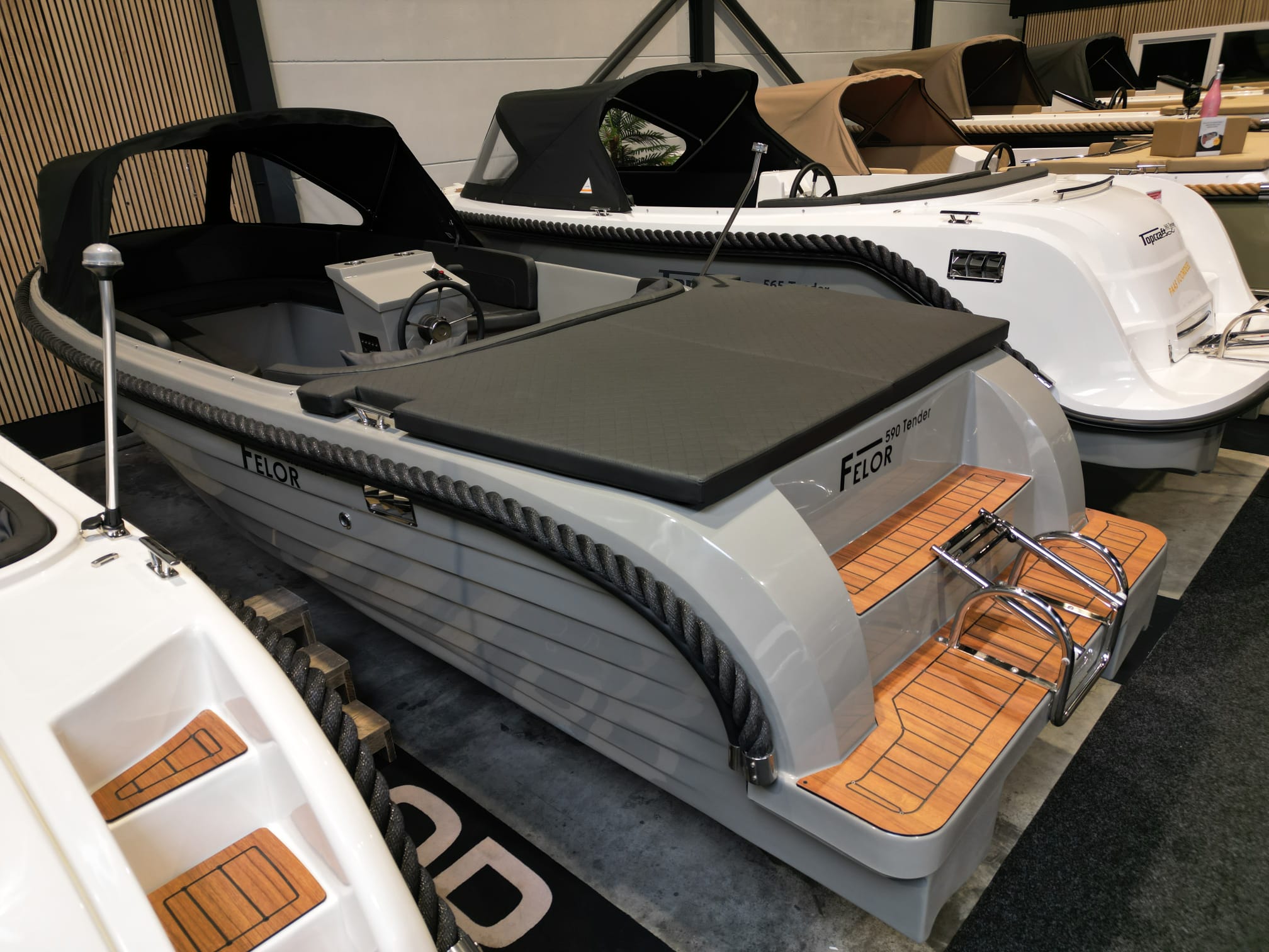De Felor 590 tender is een betaalbare familie tender. De rondzit in de boeg biedt plaats aan het hele gezin. De buitenboordmotor wordt geplaatst in de bun, waardoor het motorgeluid tot een minimum wordt beperkt.